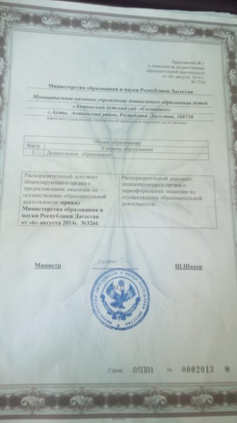 | Сокращенное наименование образовательной организации* | МКДОУ «Детский сад Солнышко» Ахты Дагестан |